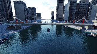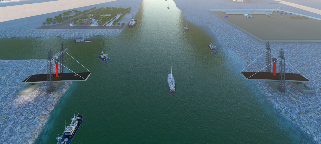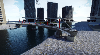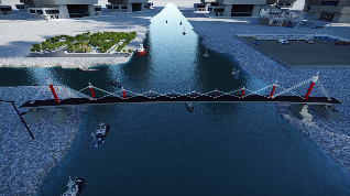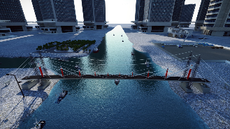 | 1、拆除邊跨滿堂支架; 2、安裝運(yùn)輸索; 3、兩側(cè)同步采用浮吊吊裝鋼箱梁; 4、吊裝后采用臨時(shí)拉索錨固。 |